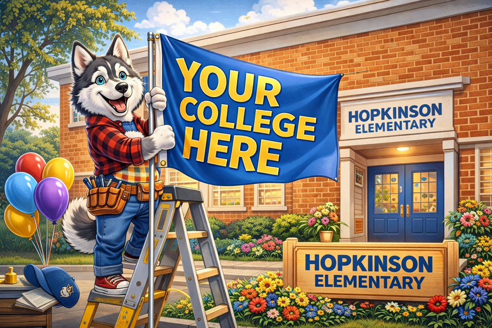 College Flag Display at Hopkinson Elementary 2026-2027 Academic Year