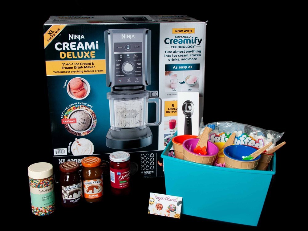 Get ready to scoop, swirl, and satisfy your sweet tooth with this deliciously fun ice cream-themed basket! Perfect for families, dessert lovers, or anyone who enjoys creating their own frozen treats at home. At the heart of this package is a Ninja Ice Cream Maker—your ticket to crafting custom ice cream, sorbet, milkshakes, and more right from your kitchen. Serve up your creations with ease using the heated ice cream scoop, and enjoy every bite in adorable ice cream bowls complete with matching spoons. Top it all off with a variety of tasty ice cream toppings to create your perfect masterpiece. And when you’re craving something out and about, treat yourself with a $25 Yogurtland gift card! Package Includes: Ninja Ice Cream Maker Heated ice cream scoop Ice cream bowls with spoons Assorted ice cream toppings $25 Yogurtland gift card Whether you're hosting a sundae night or just indulging in a cozy dessert at home, this basket is the ultimate recipe for fun and flavor! 🍨✨